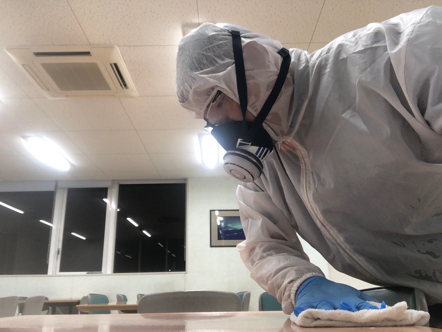 猛威をふるったコロナウイルスをはじめ、ノロウイルスやO-157などの感染症を高濃度オゾンと薬剤のハイブリッド除菌を行なっています。目に見えない脅威ですので依頼主様は安心を求めています。施工前に施工内容を説明します。徹底除菌を室内の設備にダメージを与える事なく行ないます(間違った薬剤を使うと変色などを起こします)完全除菌に自信がありますので施工後には保護具をすべて外し室内点検をいたします。 | |