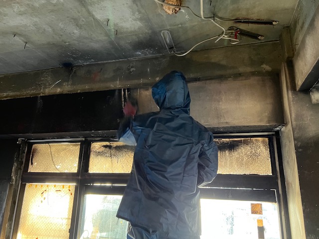 火災現場作業 火災現場では殆どのものが焼けて処分をしないといけません。家主様には罹災証明書を取得していただき自治体の補助を受けて処分していきます。その後、解体をしてスケルトン状態から消臭作業に入ります。具体的には有害物質除去、煤の除去、オゾン消臭、コーティング作業を施します(居室内全焼の場合)ボヤ程度の場合は、躯体を保護し、煤の徹底洗浄と消臭作業を施していきます。当社ではボヤ程度から工場火災まで対応が可能です。 | |