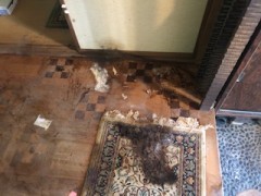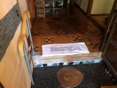 遺品整理専門業者様よりご依頼をいただきました。「遠方に住む知り合いのご遺族から遺品整理の依頼が入って現場についたら孤独死現場だった。孤独死現場とは聞いていなかった。直ぐに特殊清掃をして欲しいが対応できるか?」との問い合わせをいただき即日施工をしました。 現場に到着して玄関を開けるとすぐに汚染された場所でした。 ![]() ![]() 最初に除菌剤を噴霧して散らかったチラシや郵便物、靴などを分別処分をして床の状態を確認しました。 ![]() ![]() 床の状態から見ると明らかに床と敷居の隙間や壁際から床下に体液が浸み込んでいるのがわかりました。依頼された遺品整理専門業者様に床下の処理はどうするか伺ったところ、 「遺品整理が終わったら建物は解体する。床上の処理とある程度の脱臭で大丈夫。」との事でしたので床上のみの施工にしました。 ![]() ![]() 過酸化水素で血液を含む体液を浮かして洗浄してから再度、除菌消臭洗浄剤で床を拭き上げます。その後、高濃度オゾンによる除菌消臭をおこない施工は終了いたしました。 ![]() ![]() 特殊清掃の施工完了後、すぐに遺品整理を始めるという事でしたのでタオルに消毒剤を染み込まして靴裏の除菌ができるようにしておきました。 今回は建物の解体が決まっていたので遺品整理、解体の業者がストレスなく作業が出来るようにしました。建物をリフォームする場合は、床板を外し、基礎部分や根太などの処理が必要になります。当社では解体から原状回復まで専門の建設業者と提携しておりますのでご相談ください。 |
