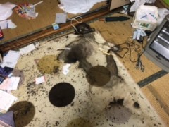 特殊清掃パック(除菌・汚染箇所洗浄梱包・一次消臭)の施工をご依頼いただきました。 愛知県安城市のご依頼主様からのお問合せが有りました。「親族が孤独死をして2カ月ほど経過している。家財は少ないので自分達が片付けます。特殊清掃をお願いできないでしょうか?」との事でしたので、最低限ご遺族様が安全に入室できるまでの項目をセットにした特殊清掃パック(税込55,000円)があることをお伝えしました。 ご依頼主様から特殊清掃パックでの施工を早急に行なって欲しいとの要請を受けましたので早速、現場に出向きました。 ![]() 2DKの間取りが今回の現場です。ご依頼主様の話では特殊清掃終了後、遺品整理と家財撤去を終えたら家屋を解体するとの事でした。 ![]() 家屋全体に除菌剤をまんべんなく噴霧をして汚染箇所の処置に入ります。汚染箇所廻りのゴミを取り除きカーペットを剥がします。カーペットは真空パックをして臭気を遮断します。 ![]() 汚染された畳は汚染箇所をブルーシートで目隠しをしてからラッピングをします。今回の現場では床下への汚染はカタラーゼ反応も出ませんでしたので除菌洗浄剤で洗浄いたしました。 ![]() 仕上げに消臭剤を噴霧後、高濃度オゾンによる除菌消臭作業を実施。時間的に余裕が有った為、通常のサイクルを2倍施工させていただきました。 ![]() 施工後、ご依頼主様に確認していただき施工完了です。 不幸にもご親族様が孤独死をされて対応に困った場合はご連絡ください。賃貸住宅と自己所有では対応の仕方が違いますので親切丁寧にご相談させていただきます。 |