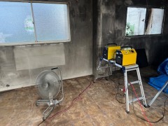 岡崎市にて火災現場(撤去解体後)の消臭作業を施工いたしました。現場は1階が飲食店で2階から上が住居になっているマンションです。1階の店舗が火災に遭われ店舗内がほぼ全焼となり残置物撤去及び解体後、スケルトン状態から消臭作業に入ります。 ![]() ![]() ![]() 煤除去作業を施工する前に高濃度オゾンにて有害物質(ダイオキシン等)を無害化します。有害物質は防塵マスクでは防ぐことが完全ではないので作業員の健康維持の為もありますが、近隣住民様への配慮も兼ねて行ないます。 その後、コンクリート面に付着した煤を除去していきます。 ![]() ![]() ![]() ワイヤーブラシ等で除去した後、専用薬剤にて中和施工をして高濃度オゾンを使い消臭作業を施工します。 ![]() ![]() コーティング作業を行ない完全消臭を達成します。 ![]() ![]() ![]() 施工後には臭気を感じることはありませんので内装工事に入ってもらう事ができます。 従来の施工方法では焦げ付きなどはグラインダーで削っていました。しかしながら作業員の増員、粉塵災害の防止、梁などの耐震性能低下のおそれなど対策する項目や施工日数長期化が発生します。その分費用も高額になります。 そこで 下処理+消臭+コーティング=完全消臭【(株)リスクベネフィットの所有する特許技術】 を使用しての施工となります。この施工は人件費削減、施工日数短期化、施工費用の抑制が大幅に見込まれます。この工法は特許という公的に認められた施工方法ですので安心してご用命ください。 |